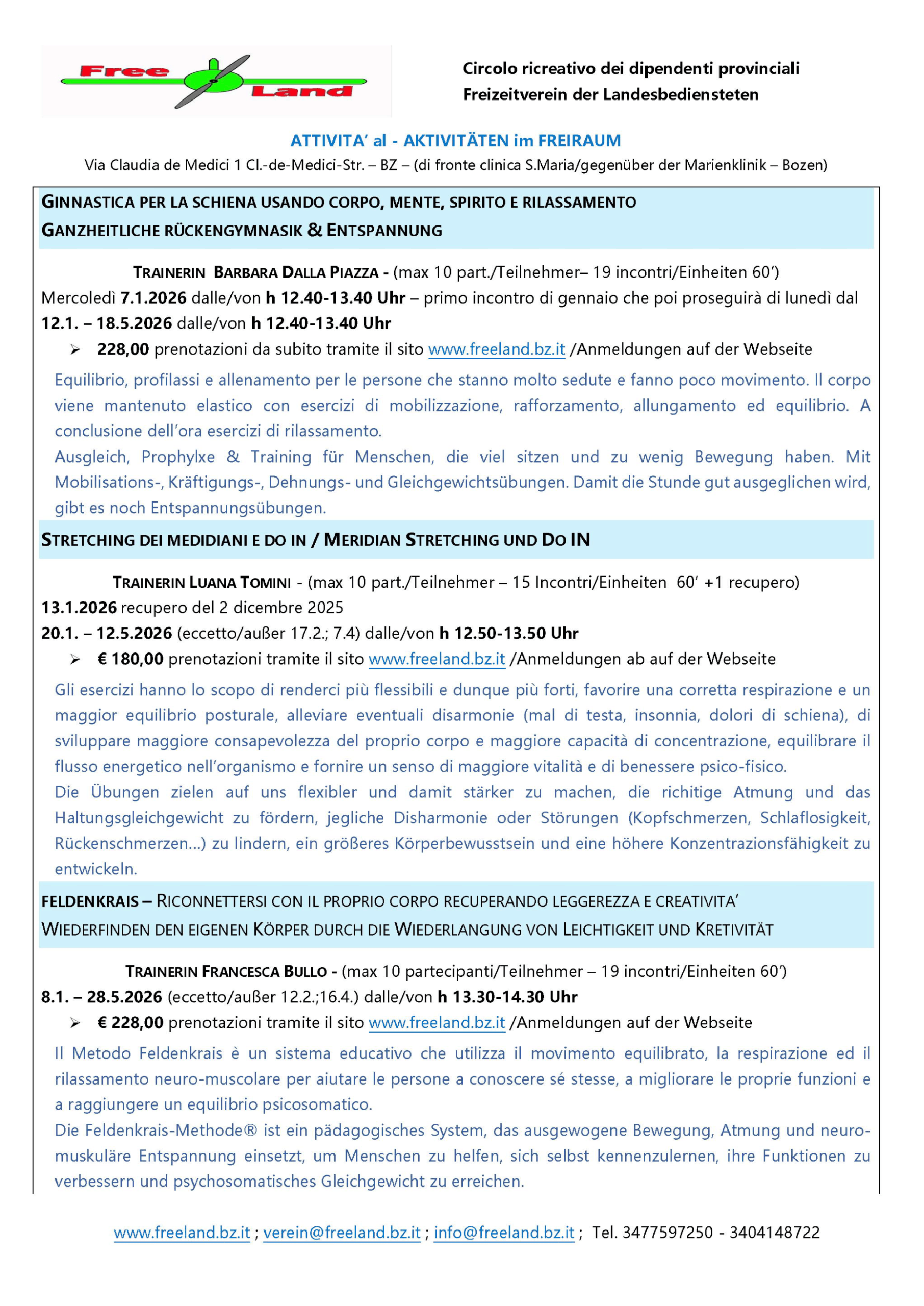 ISTRUTTRICE FRANCESCA BULLO – (max 10 partecipanti – 19 incontri da 60’)