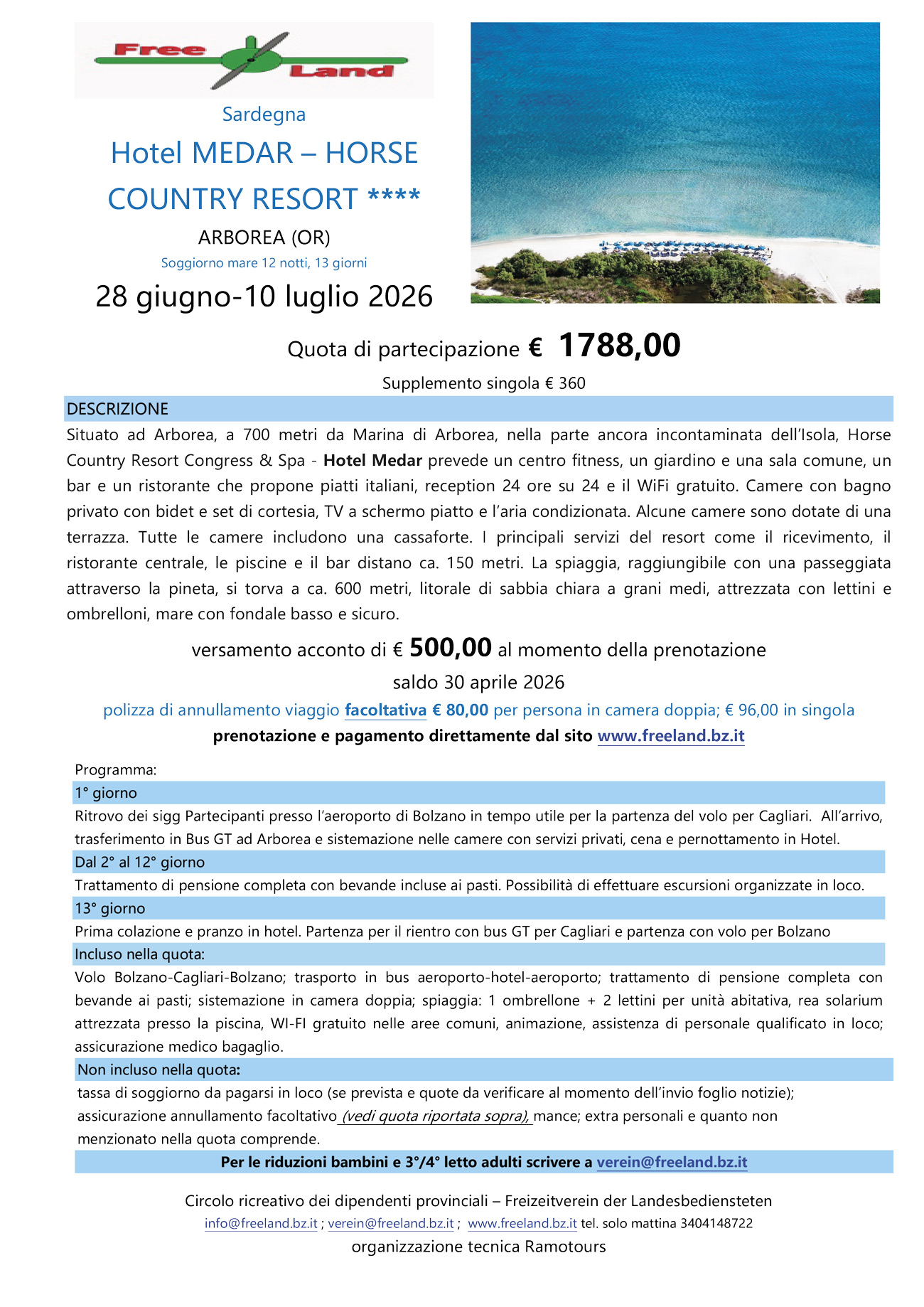 ristorante centrale, le piscine e il bar distano ca. 150 metri. La spiaggia, raggiungibile con una passeggiata